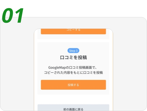 集めたアンケートの中で、基準より高い評価がついた場合のみGoogleの口コミ投稿画面へのリンクを表示し投稿の促しをすることができます。